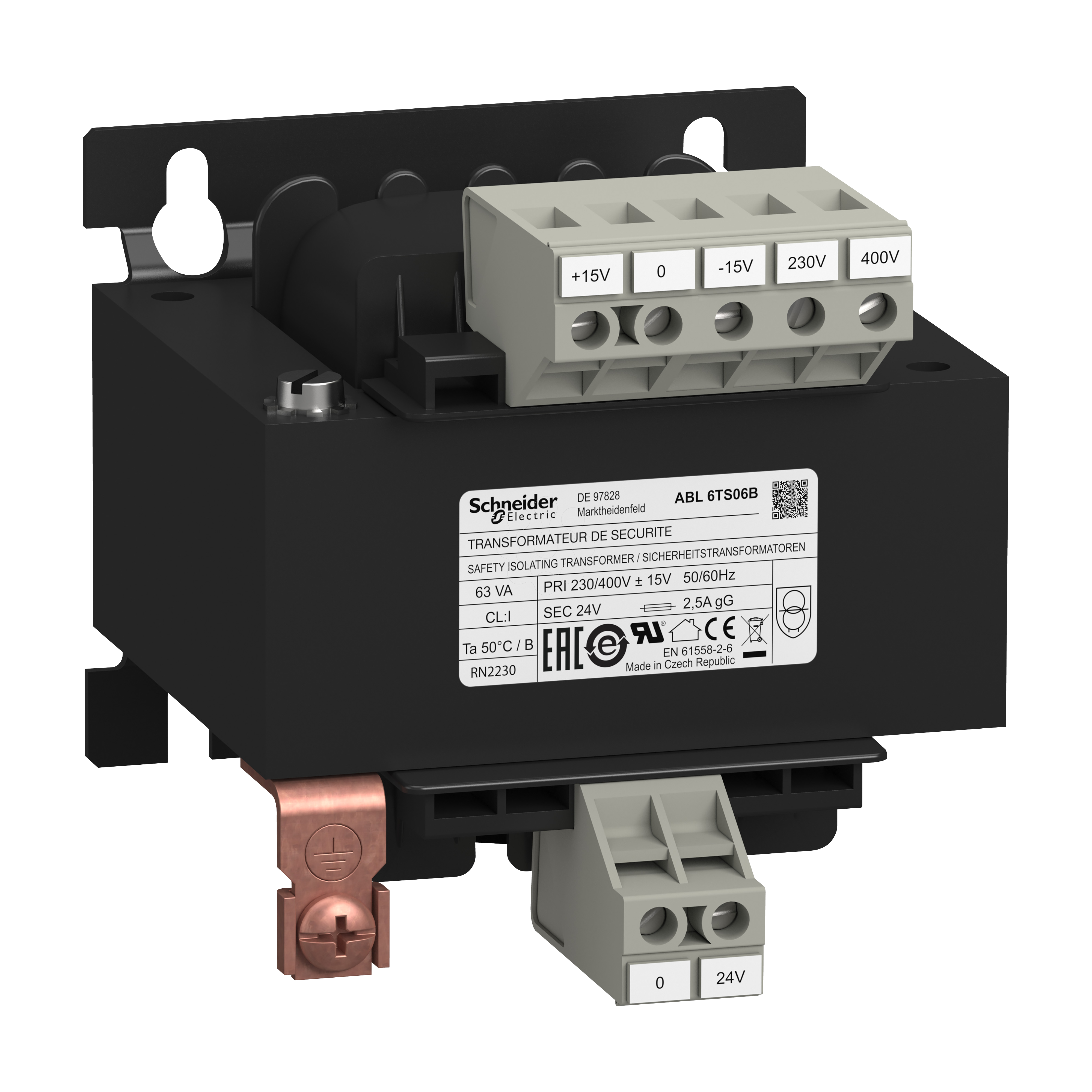 Transformador de tensão - 230..400 v - 1 x 24 v - 63 va
