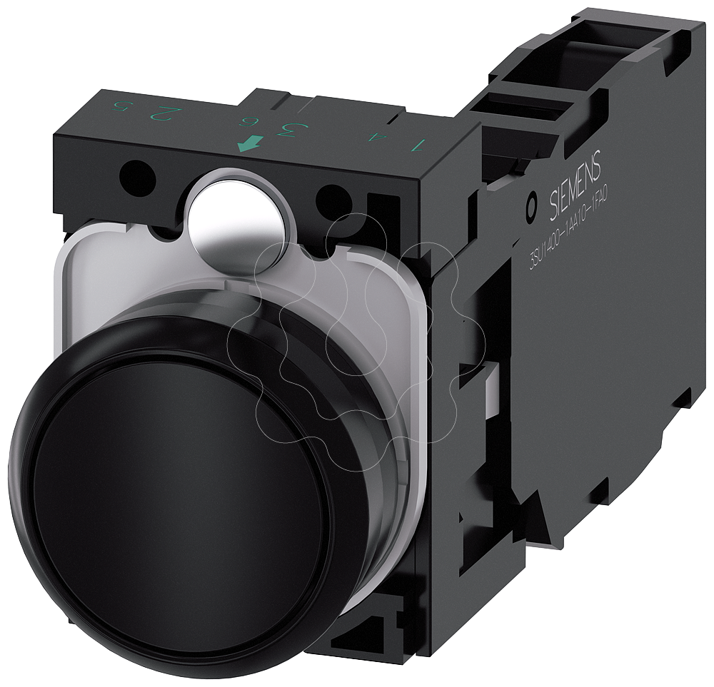botão, 22 mm, redonda, plástico, preto, botão de pressão, plano, tecla com retorno, com suporte 1NA+1NF, conexão parafusada, Botão de pressão SIRIUS ACT para a comutação e o comando de consumidores elétricos.Sob o nome de marca SIRIUS ACT, a Siemens disponibiliza um portfólio ímpar de aparelhos de comando e unidades de sinalização com aprovações de produto mundiais em três séries de design modernas em metal autêntico e robusto e plástico de alta qualidade.O inovador conceito de encaixe simplifica a montagem ao ponto de ser necessária apenas uma mão e nenhuma ferramenta especial. Como orifícios de montagem basta usar furos sem ranhura, pois já se encontra integrada uma proteção total contra torção.Graças ao tipo de proteção continuamente elevado, os aparelhos robustos são adequados para a indústria e a utilização no exterior. É mesmo possível a limpeza com jato de alta pressão. Nem pó, nem óleos ou lixívias agressivas podem perturbar a operação fiável.Além da fiação padrão, os aparelhos também podem ser ligados ao comando via PROFINET, AS-Interface ou IO-Link. Isso permite reduzir o trabalho de cablagem, minimizar as fontesde perigo e ganhar maior flexibilidade.O configurador online gráfico ajuda confortavelmente na seleção e no pedido de aparelhagens individuais, caixas e inscrições. Está disponível uma documentação abrangente (p. ex. manual, dados 3D, diagrama de conexão).Versões disponíveis: várias cores, com/sem iluminação, com/sem inscrição, acionamento por encaixe/contacto, diferentes alturas de botão de pressão e aro frontal.Nota: Aparelho completo, entrega inclui suporte e módulos.SIRIUS ACT - Performance in Action ao efetuar um comando e notificar. Simples de montar, simplesmente resistente, simplesmente perfeito.