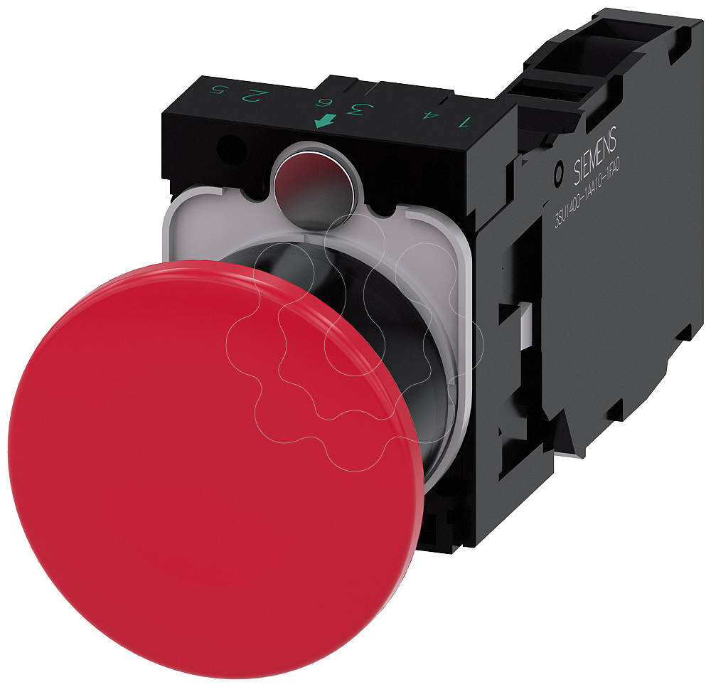 botão tipo cogumelo, 22 mm, redonda, plástico, vermelho, 40 mm, de encaixe, desbloqueio puxando, com suporte, 1NA+1NF, conexão parafusada Botão de pressão tipo cogumelo SIRIUS ACT com manípulo grande para o acionamento confortável com toda a mão.Sob o nome de marca SIRIUS ACT, a Siemens disponibiliza um portfólio ímpar de aparelhos de comando e unidades de sinalização com aprovações de produto mundiais em três séries de design modernas em metal autêntico e robusto e plástico de alta qualidade.O inovador conceito de encaixe simplifica a montagem ao ponto de ser necessária apenas uma mão e nenhuma ferramenta especial. Como orifícios de montagem basta usar furos sem ranhura, pois já se encontra integrada uma proteção total contra torção.Graças ao tipo de proteção continuamente elevado, os aparelhos robustos são adequados para a indústria e a utilização no exterior. É mesmo possível a limpeza com jato de alta pressão. Nem pó, nem óleos ou lixívias agressivas podem perturbar a operação fiável.Além da fiação padrão, os aparelhos também podem ser ligados ao comando via PROFINET, AS-Interface ou IO-Link. Isso permite reduzir o trabalho de cablagem, minimizar as fontes de perigo e ganhar maior flexibilidade.O configurador online gráfico ajuda confortavelmente na seleção e no pedido de aparelhagens individuais, caixas e inscrições. Está disponível uma documentação abrangente (p. ex. manual, dados 3D, diagrama de conexão).Versões disponíveis: diâmetro do cogumelo de 30/40/60 mm, várias cores, com/sem iluminação, acionamento por encaixe/contacto, desbloqueio por puxão/rotação.Nota: Aparelho completo, entrega inclui suporte e módulos.SIRIUS ACT - Performance in Action ao efetuar um comando e notificar. Simples de montar, simplesmente resistente, simplesmente perfeito.
