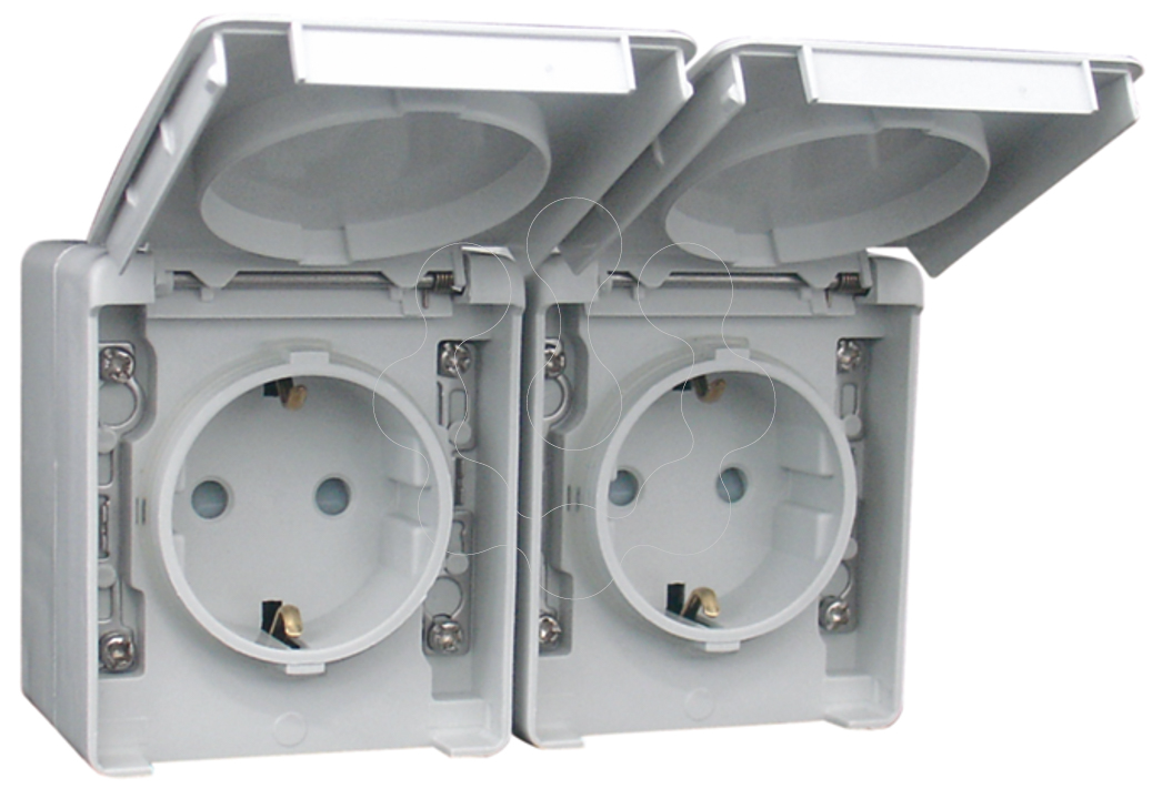 TOMADA DUPLA SCHUKO HORIZONTAL COM OBTURADOR CINZENTA